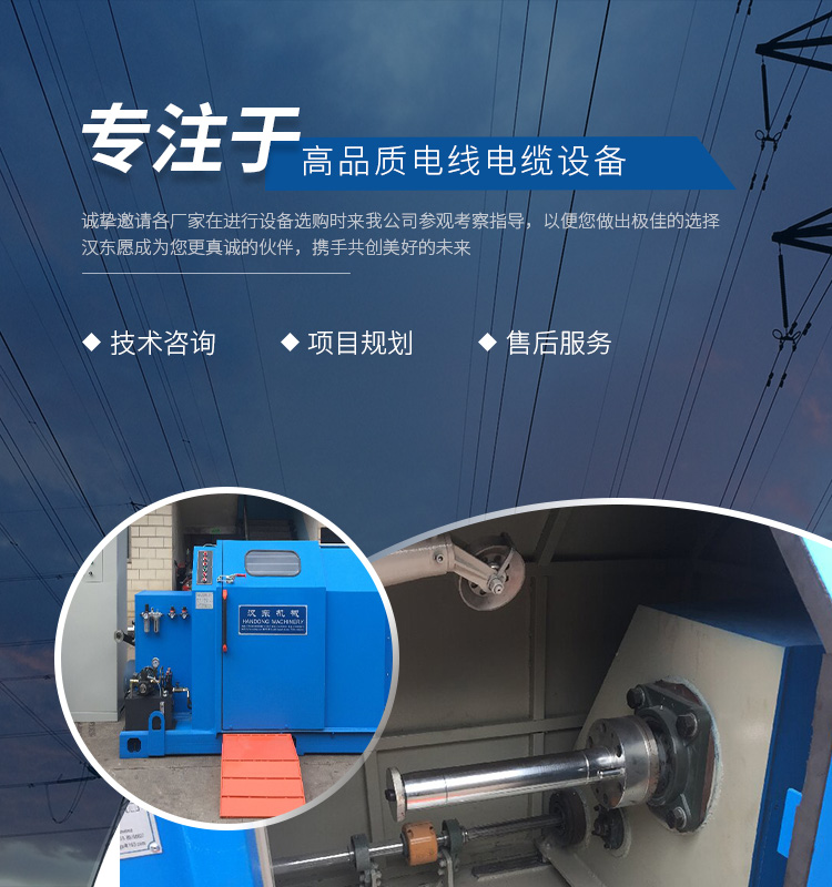 常州漢東機(jī)械始創(chuàng)于2006年,是集電線電纜機(jī)械設(shè)計(jì)、開發(fā)、制造、安裝、調(diào)試為一體化的高科技企業(yè)。本公司自開業(yè)以來(lái),積極引進(jìn)日本,歐美等國(guó)外電線電纜設(shè)備之先進(jìn)技術(shù),先后成功推出了達(dá)到行業(yè)先進(jìn)水平的電線電纜設(shè)備,主要產(chǎn)品有擠出、繞包、束線、成纜等電線電纜固定設(shè)備。在提供系統(tǒng)設(shè)備的同時(shí),還向客戶提供售前技術(shù)咨詢、項(xiàng)目規(guī)劃、以及售后服務(wù)。我公司本著“以人為本、科技先導(dǎo)、用戶為上”的宗旨,為客戶提供牢靠的產(chǎn)品與省心的服務(wù)。漢東愿成為您更真誠(chéng)的伙伴,攜手共創(chuàng)美好的未來(lái)!